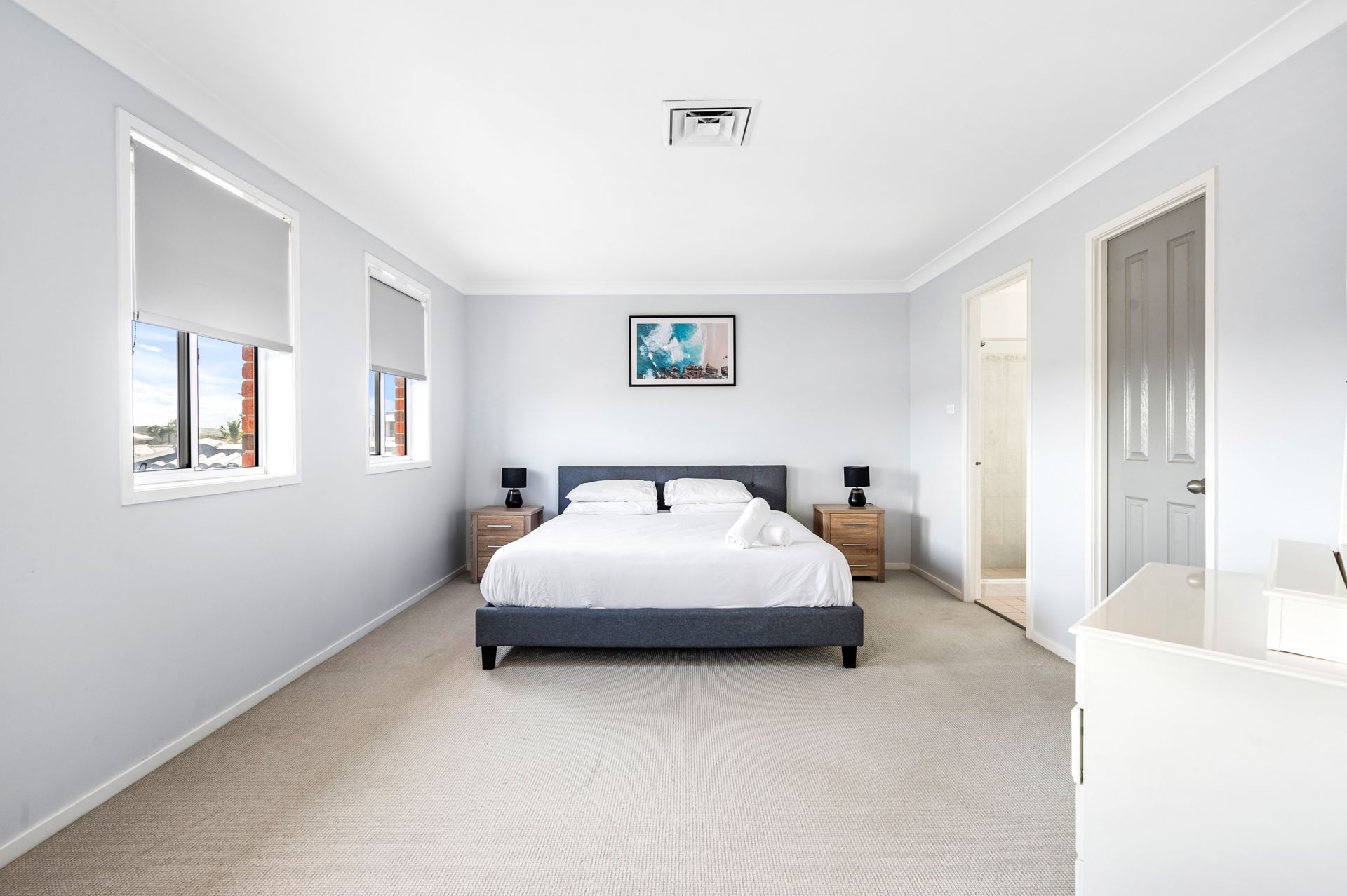 Designed for comfort and functionality, each bedroom is well-appointed with fans and built-in robes, ensuring a restful night's sleep. The master suite takes luxury to new heights, featuring an oversized layout, a spacious ensuite, and a walk-in wardrobe – your private haven within a haven.