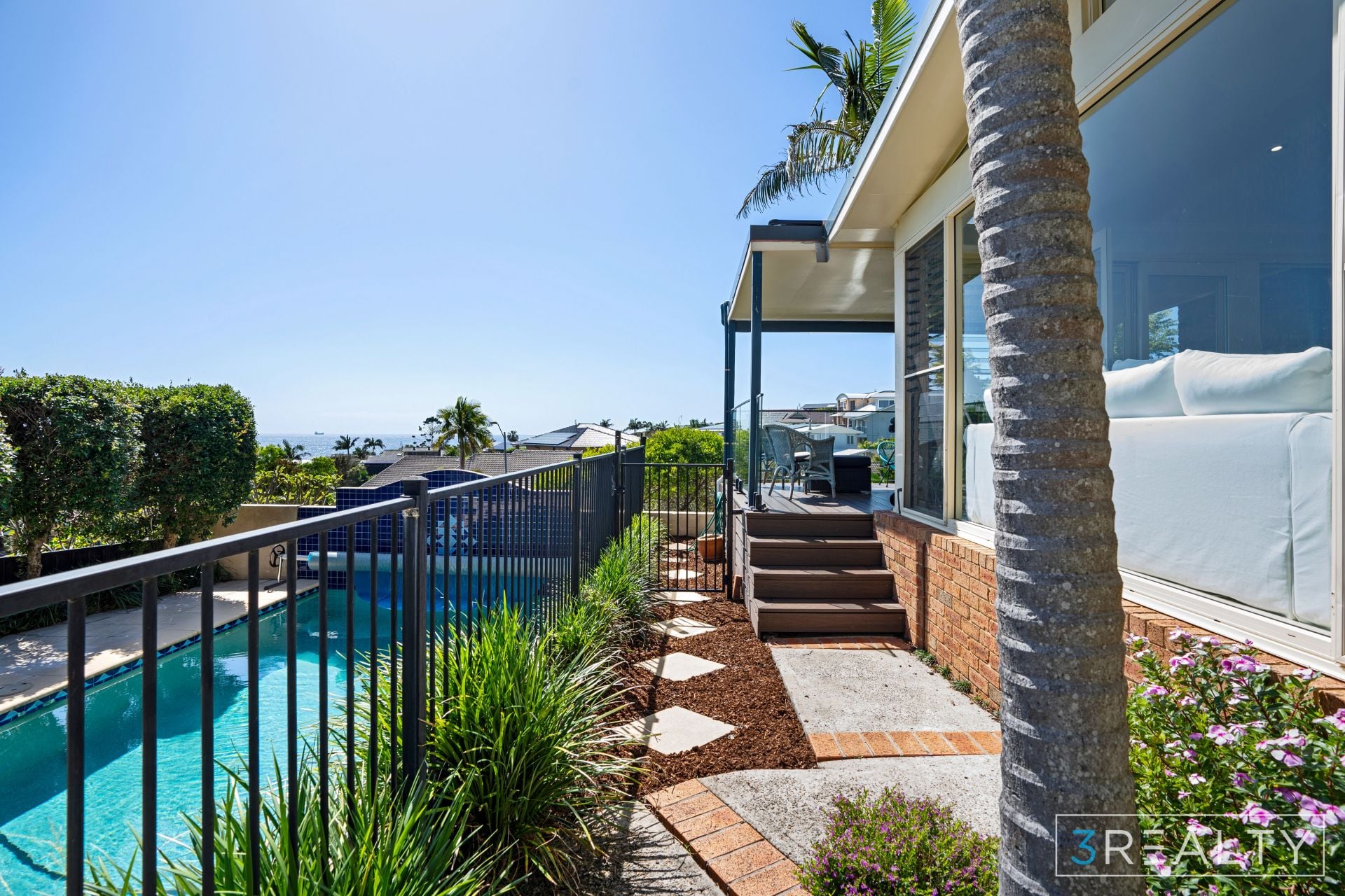 Outside, the large deck and in-ground pool provide the perfect setting for alfresco dining or relaxing by the water. With plenty of space for entertaining or unwinding, the outdoor area is designed to take full advantage of the beautiful coastal climate.