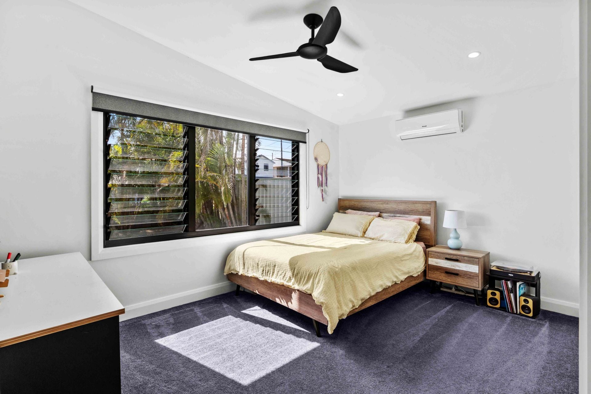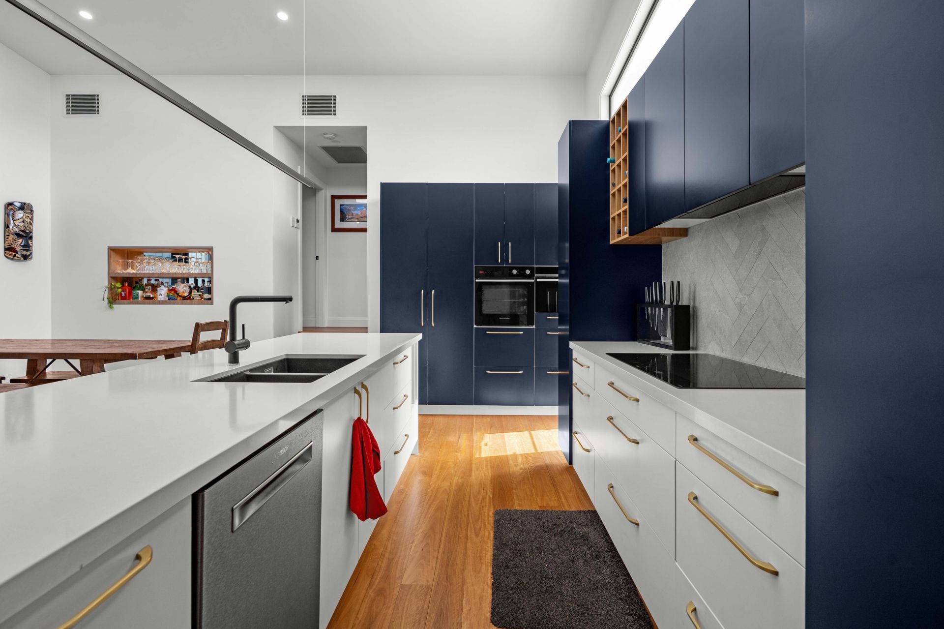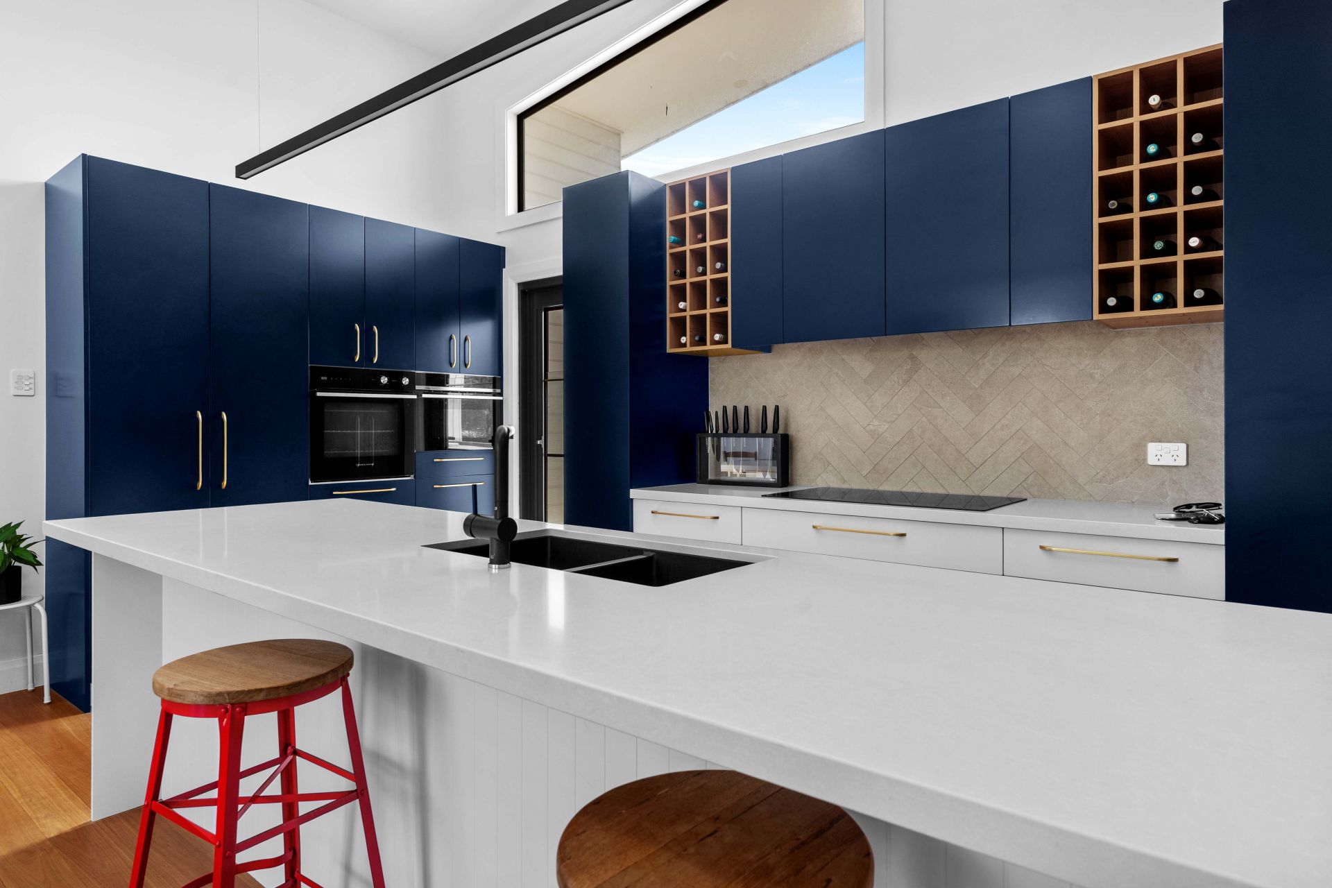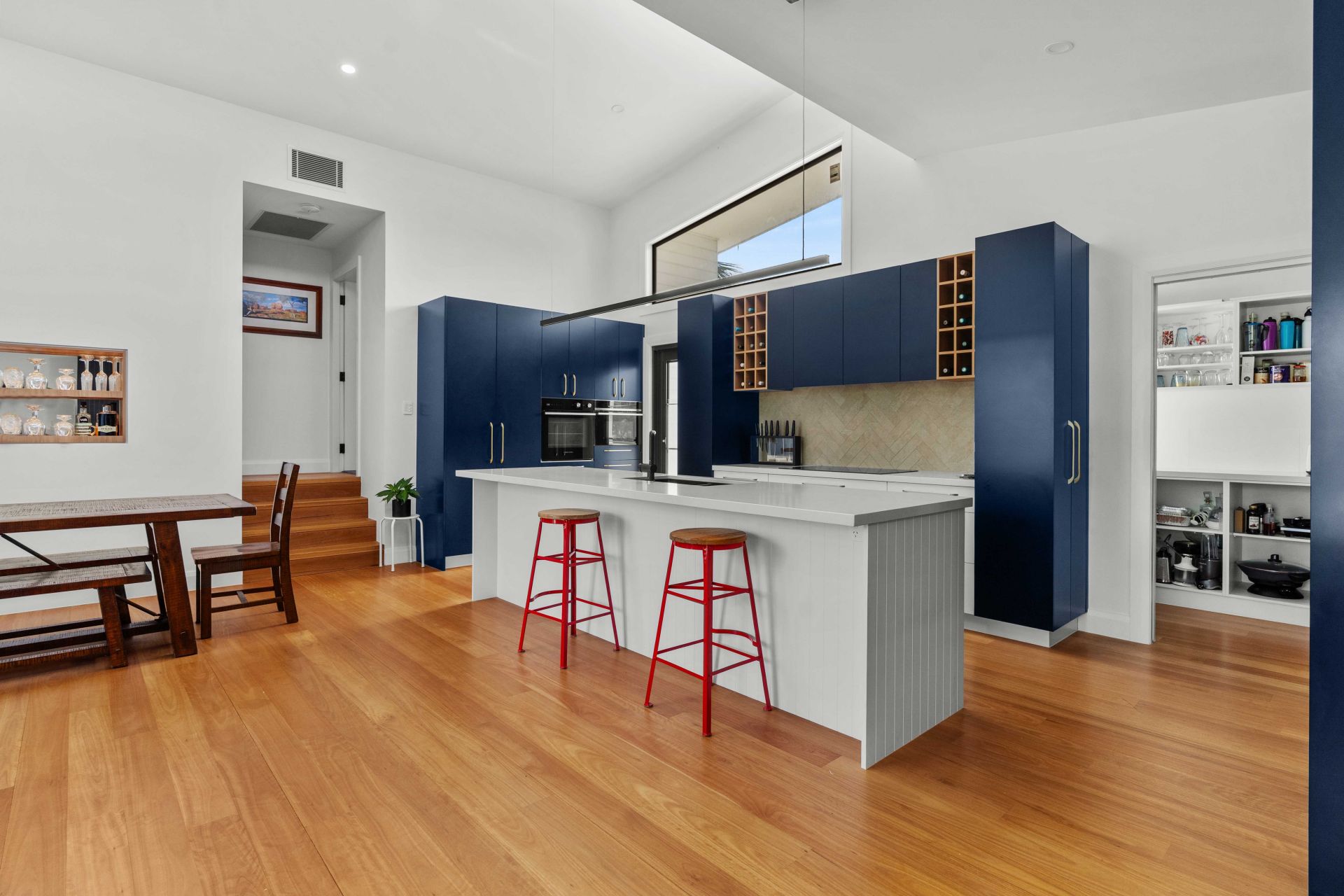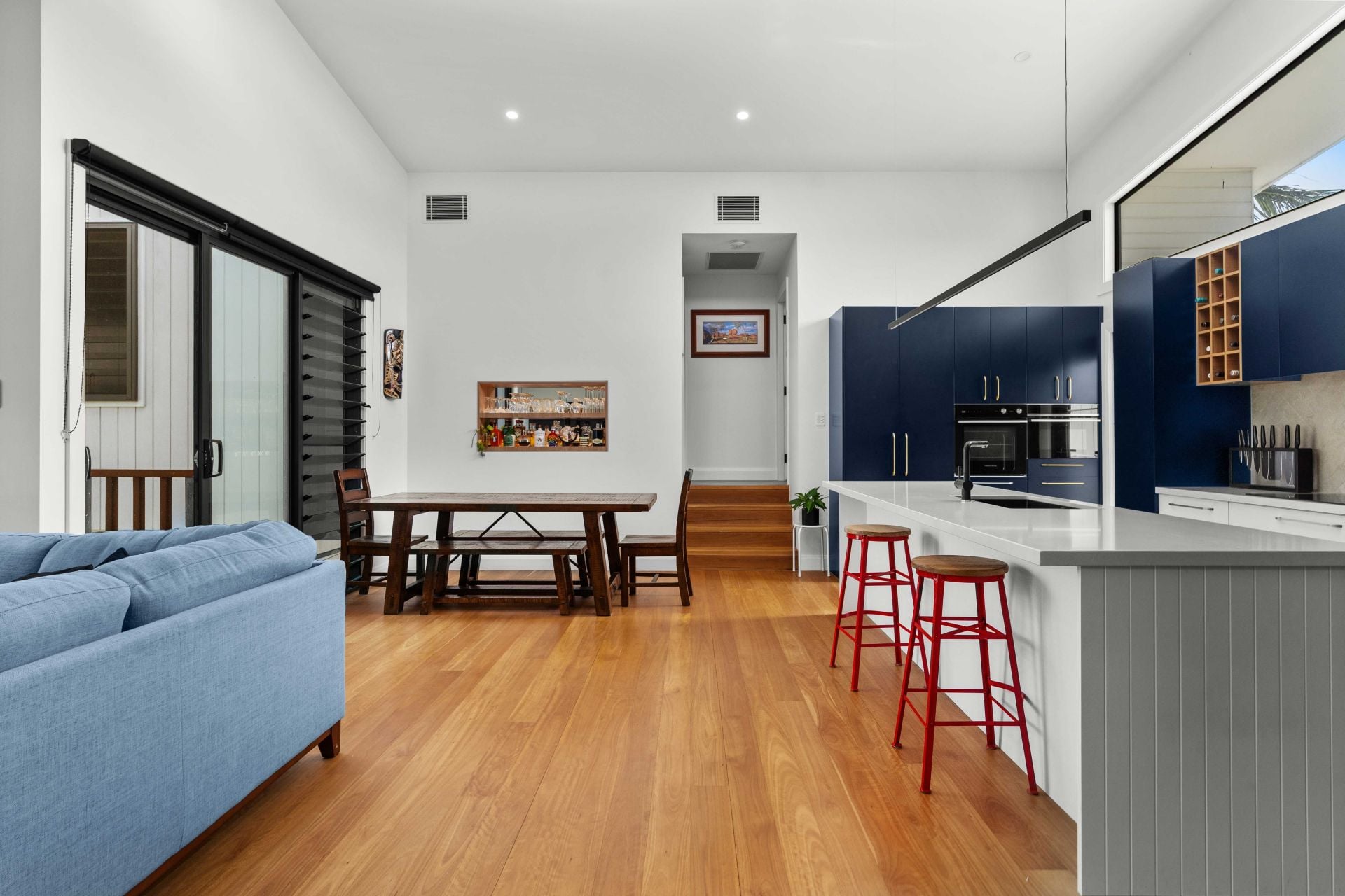 Timber floors run throughout, adding warmth and cohesion, while ducted air conditioning and additional split systems ensure year-round comfort.