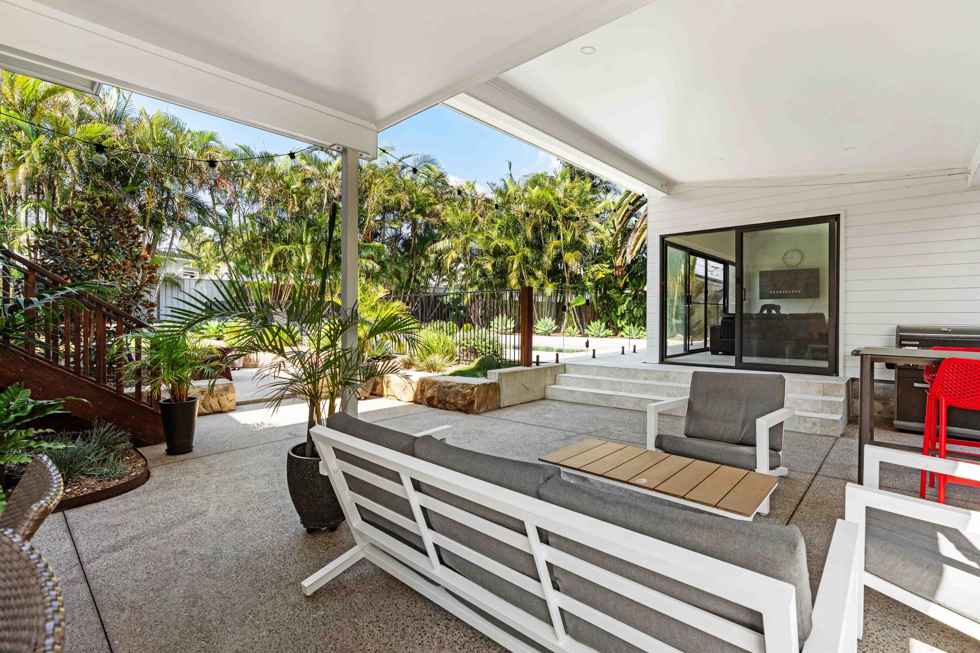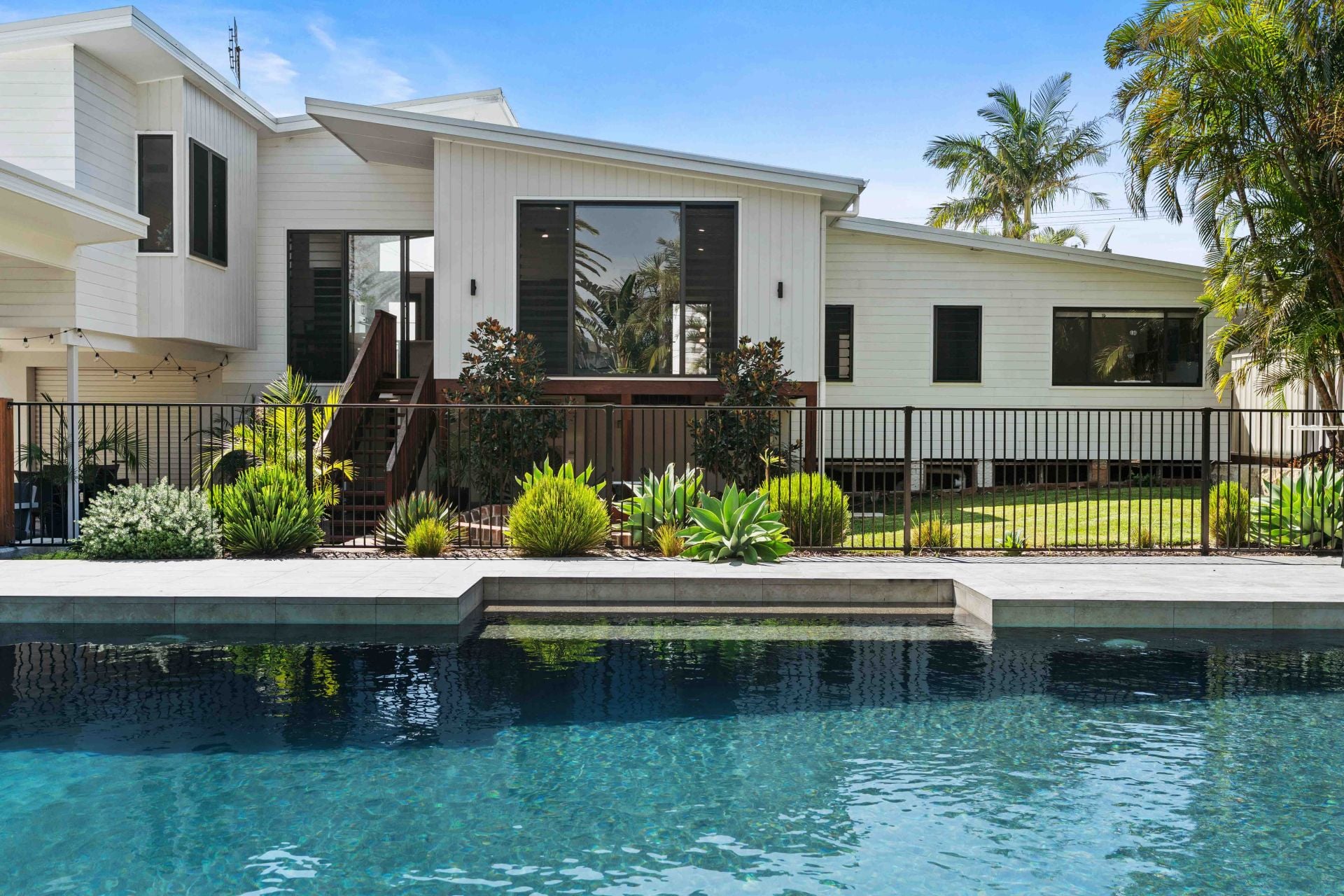 Privately set behind manicured gardens and striking contemporary fencing, this five-bedroom home delivers scale, sophistication and an incredible connection between indoors and out. Every element has been thoughtfully curated, from the brand-new custom kitchen with butler's pantry to the expansive glazing that frames the sparkling pool and lush tropical surrounds.