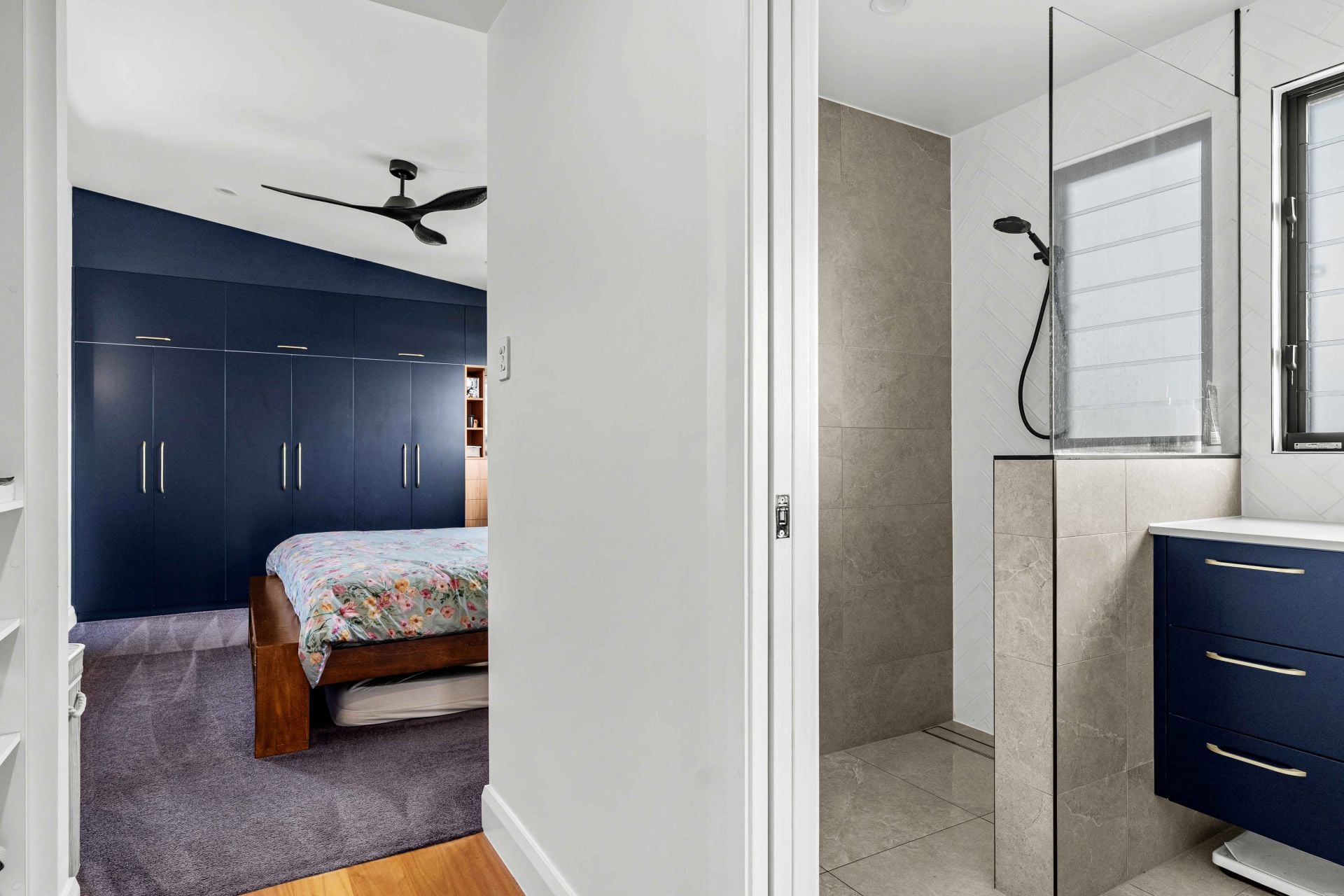The master suite is privately positioned, offering a true retreat separate from the rest of the home. Complete with a luxurious ensuite, walk-through wardrobe and custom joinery, it feels more boutique hotel than suburban residence.