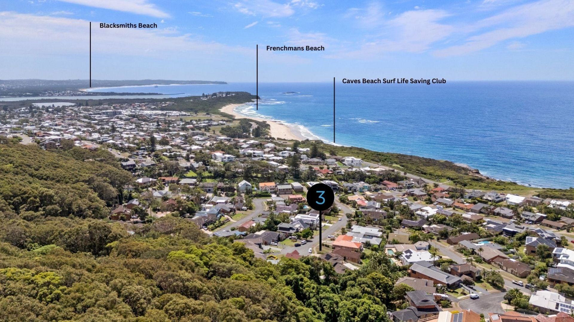 Positioned within one of Caves Beach's most tightly held coastal enclaves, this elevated brick residence captures panoramic Pacific Ocean views and delivers the ultimate beachside escape.