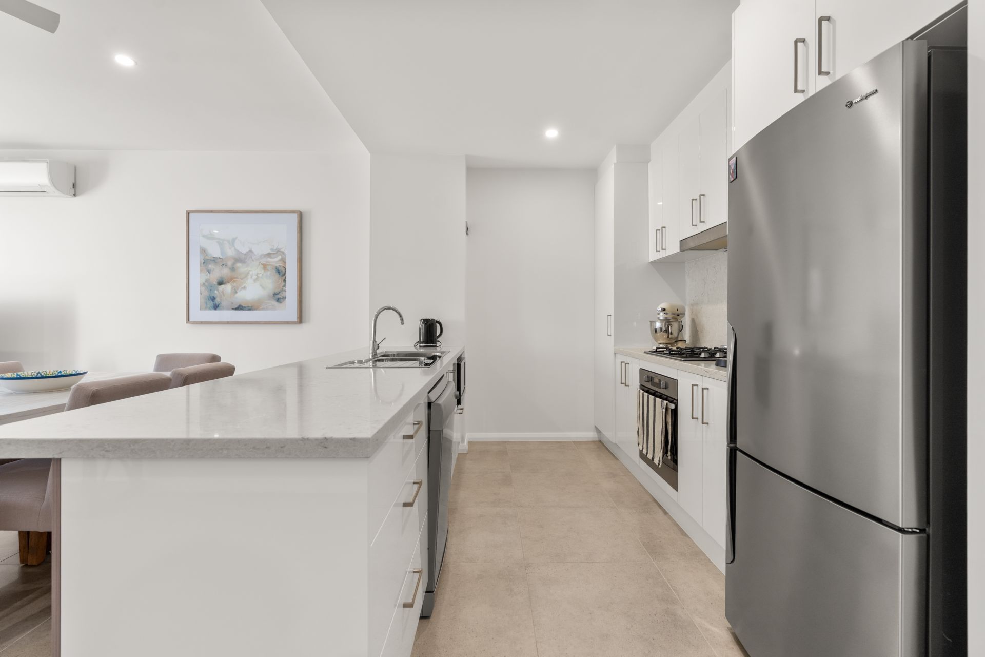 The ground level features generous open-plan living, dining and kitchen spaces, designed for everyday comfort and effortless entertaining. The kitchen is well appointed and functional, flowing seamlessly into the living area and out to the outdoor space. Also located on this level is the main bedroom complete with an ensuite, allowing for the convenience of single-level living if desired.